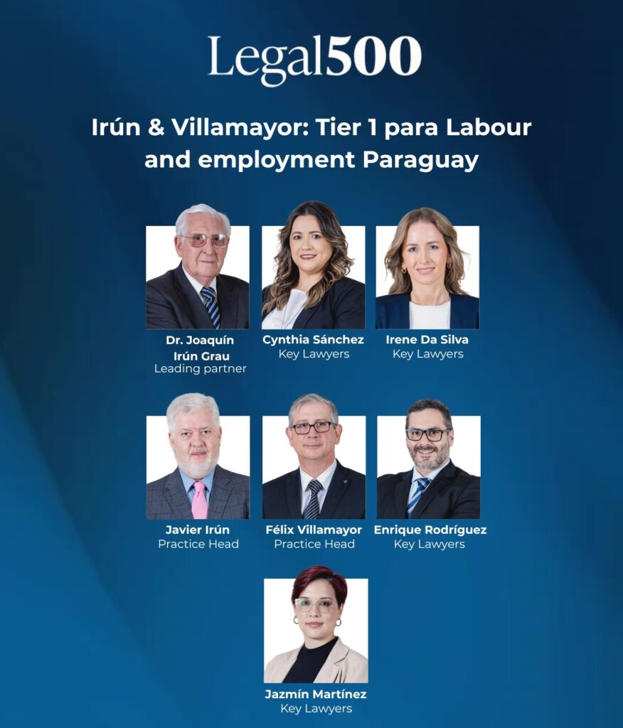 Con más de 35 años de experiencia en derecho laboral empresarial, en Irún & Villamayor nos hemos consolidado como la firma líder en Paraguay en asesoría laboral, seguridad social y representación legal de empleadores. Nuestra trayectoria desde 1989 y especialización exclusiva en el derecho del trabajo nos han permitido brindar soluciones estratégicas e innovadoras a empresas nacionales e internacionales, anticipándonos a los desafíos del entorno laboral y normativo.